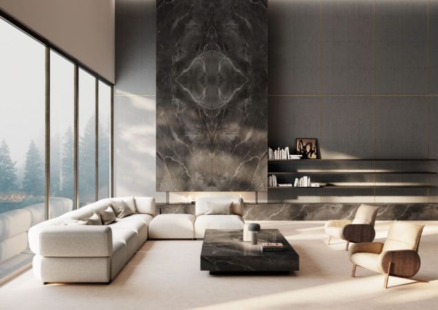 Andromeda is a dramatic porcelain slab inspired by cosmic beauty. Its deep black background is illuminated by bold white veining and smoky grey textures, recalling the mystery of galaxies and celestial formations. Powerful yet refined, it creates a striking statement in kitchens, bathrooms, and feature walls, embodying timeless elegance with a modern edge.