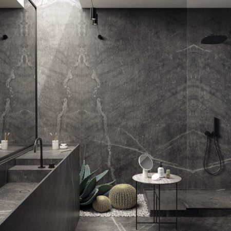 Atlantis Grey is a sophisticated porcelain slab with a deep grey base enriched by subtle tonal variations and fine veining. Its refined surface recalls the elegance of natural stone while maintaining a modern, versatile character. Perfect for contemporary interiors, it enhances kitchens, bathrooms, and large surfaces with understated strength and timeless style.