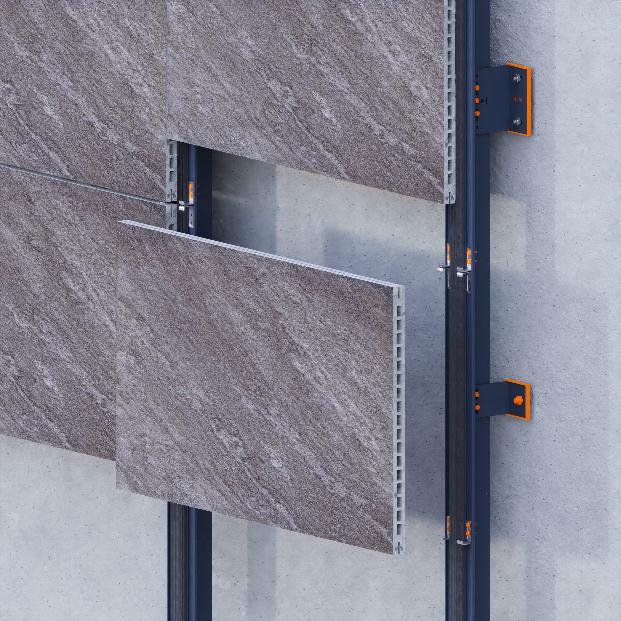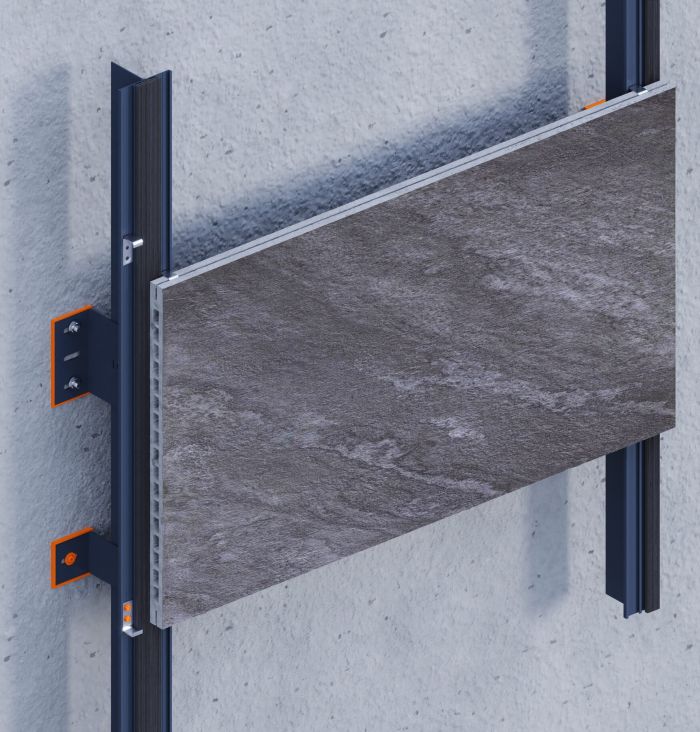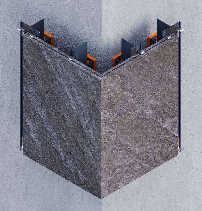 This invisible mechanical fixing system is specifically engineered for 20 mm extruded porcelain tiles with factory-integrated, full-width edge grooves. It uses concealed stainless steel clips, anchored to a vertical aluminum substructure, to achieve a seamless, hardware-free façade surface.A key feature of the system is the continuous EPDM gasket placed inside the vertical aluminum profiles. This element prevents water ingress through vertical joints, cushions the tile edges, and reduces vibration and acoustic transfer.The system supports both horizontal and vertical tile installation, ensuring long-term structural integrity, aesthetic consistency, and ease of maintenance for ventilated façade applications.