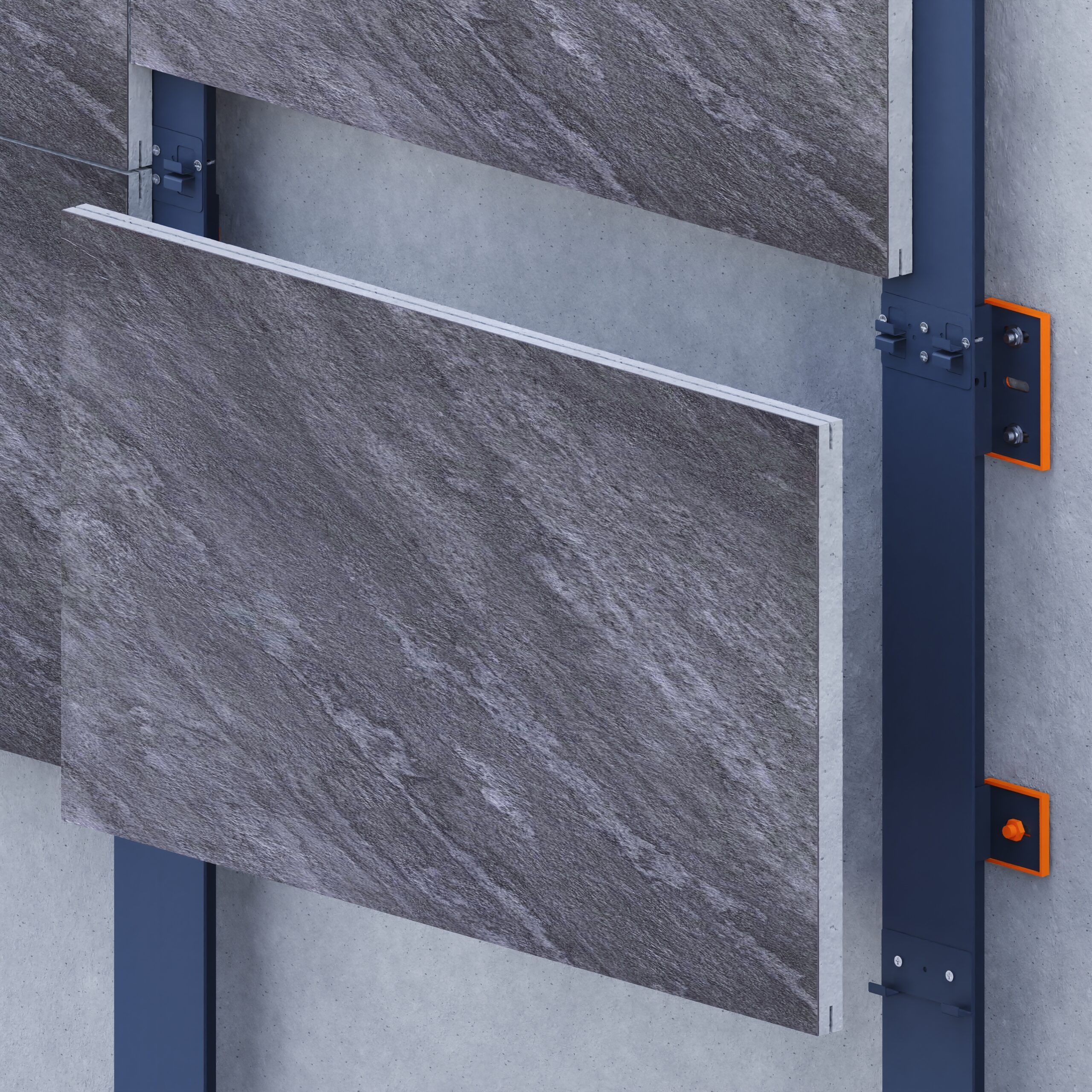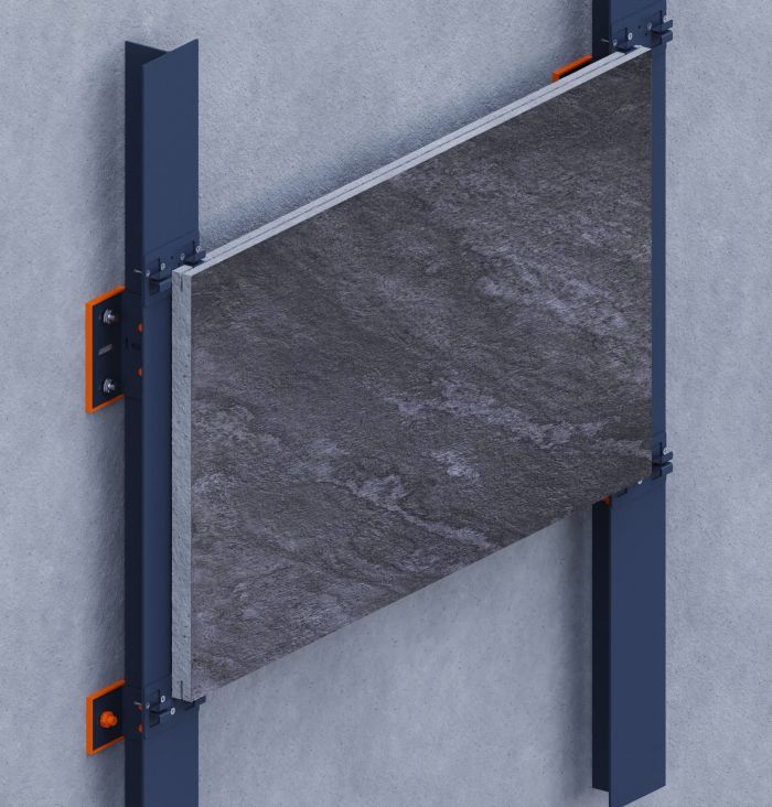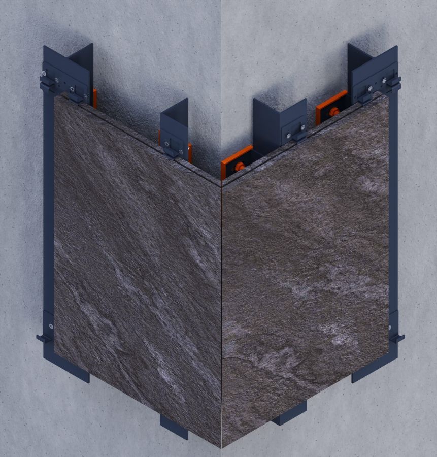This concealed fixing method delivers a clean, hardware-free façade finish for 12–20 mm porcelain tiles and slabs. Tiles are prepared with a 3–5 cm edge groove to receive stainless steel 316 clips, which anchor to an aluminum substructure for secure installation.Compatible with both vertical and horizontal layouts, the system works with pre-grooved tiles or those prepared on-site using a slotting machine. It ensures structural reliability while maintaining a minimalist appearance—ideal for modern ventilated façades using porcelain surfaces.