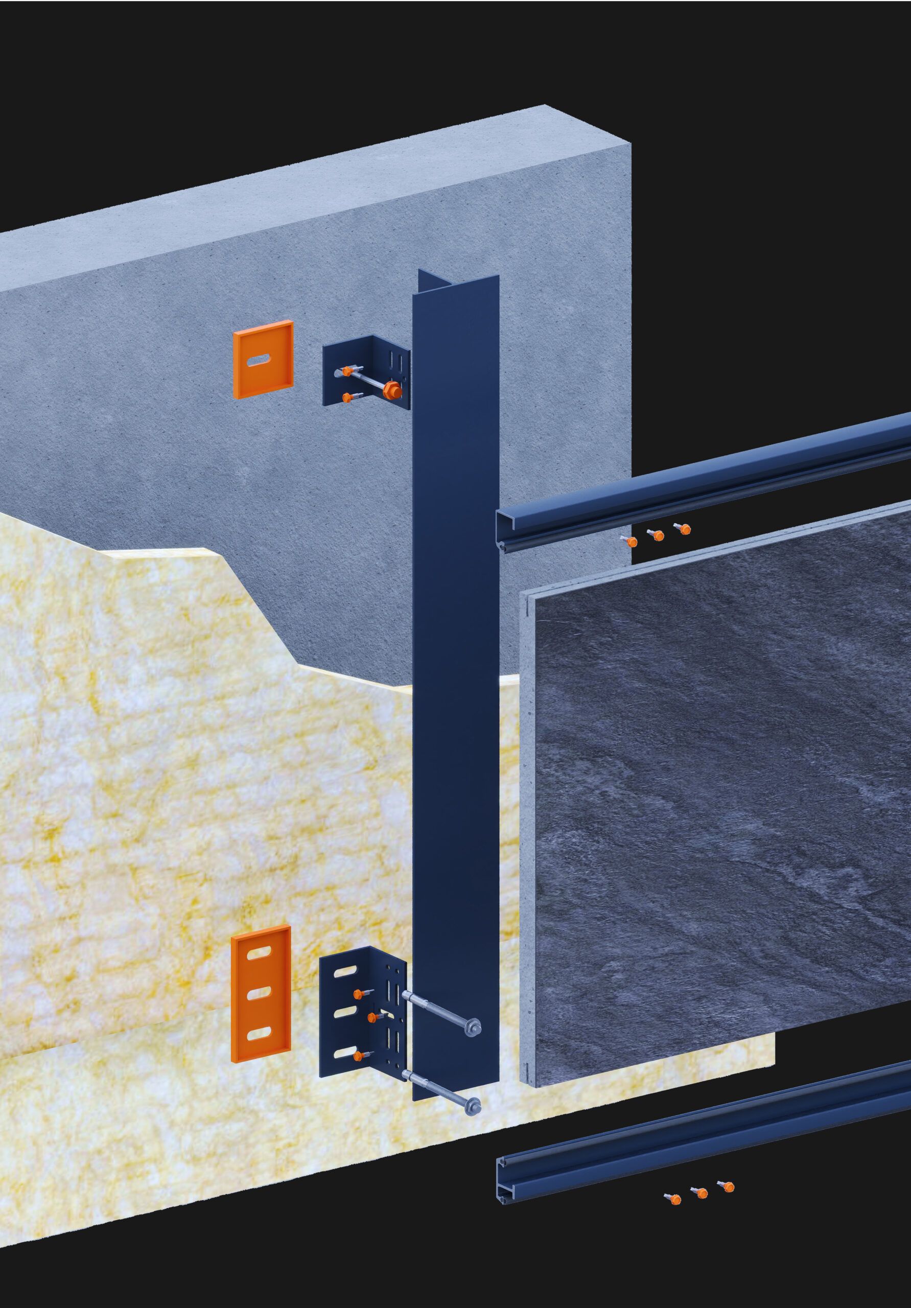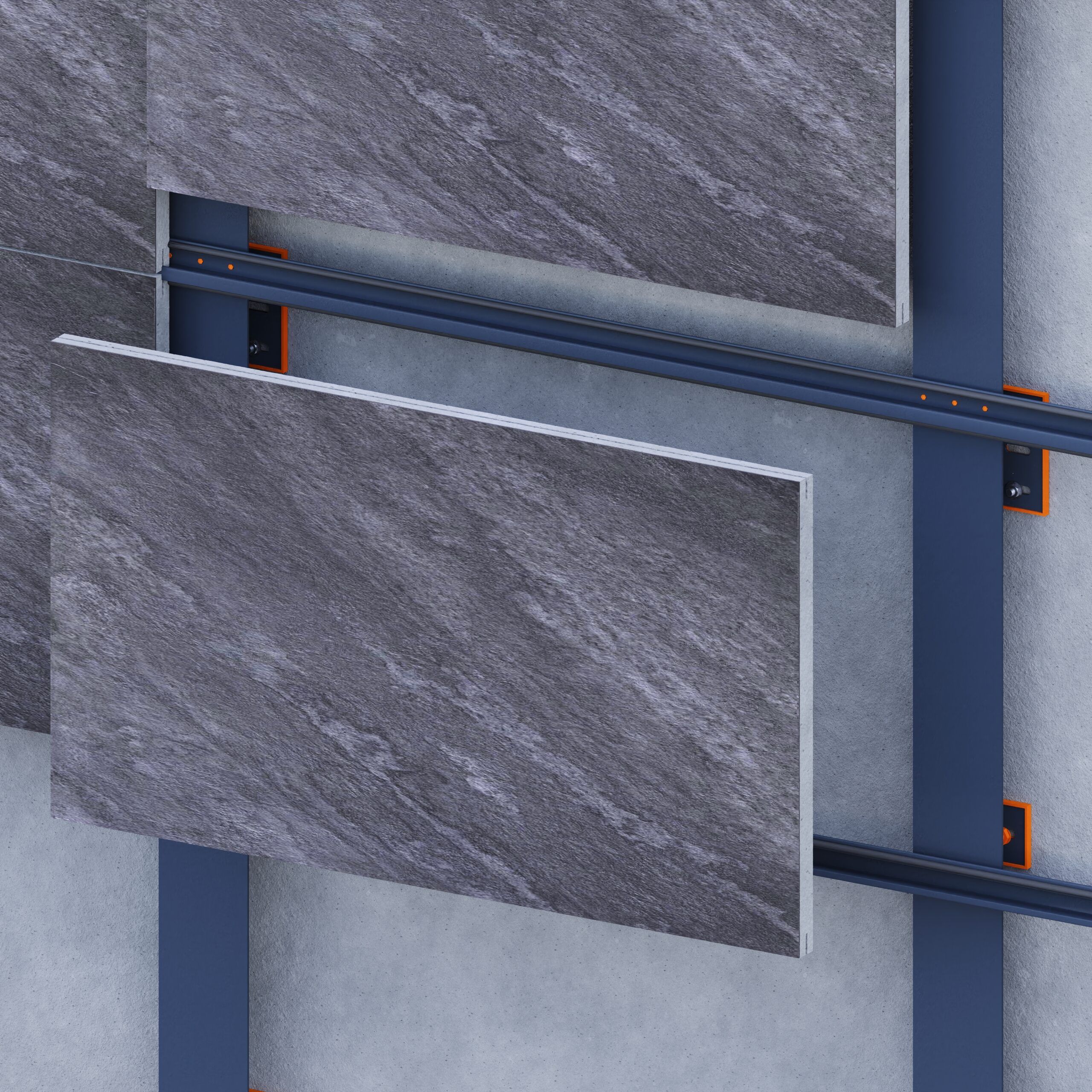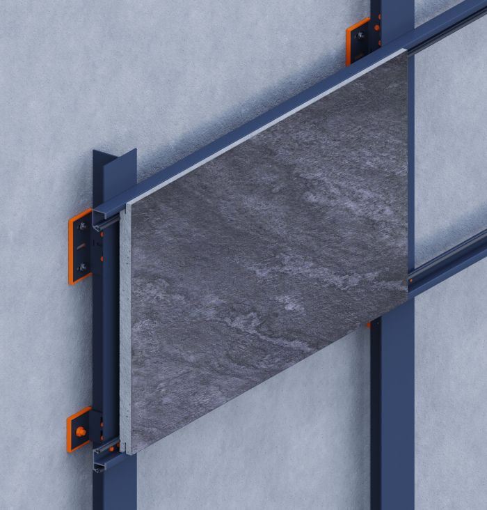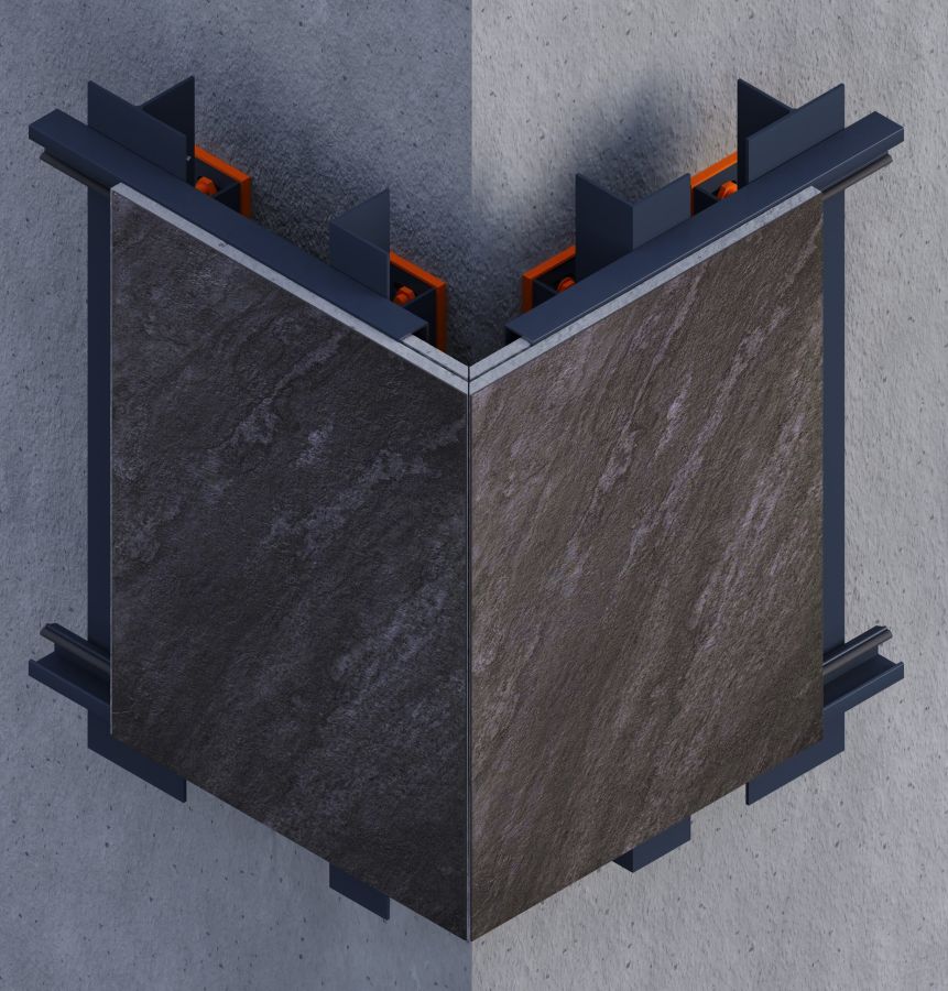 This concealed fixing system is designed for 12–20 mm porcelain tiles with full-width edge grooves, formed either in the factory or on-site. Tiles are secured using horizontal aluminum profiles and a hidden EPDM strip on the rear face to absorb vibration and accommodate minor tolerances.The result is a clean, fastener-free façade surface with strong mechanical engagement and simplified installation. Suitable for both horizontal and vertical layouts, this dry system requires no adhesives, reduces environmental impact, and ensures long-term stability, acoustic comfort, and precise alignment under wind and thermal loads.
