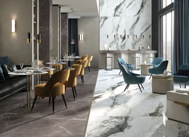 Renoir is a surface that faithfully reproduces the charm of the most precious natural marbles, characterized by intense veining and unique color contrasts. The porcelain stoneware slabs, in the large 160×320 cm format, offer visual continuity, durability, and an aesthetic ideal for high-profile design projects. Perfect for floors, walls, and kitchen countertops, they combine timeless elegance and advanced technical performance.