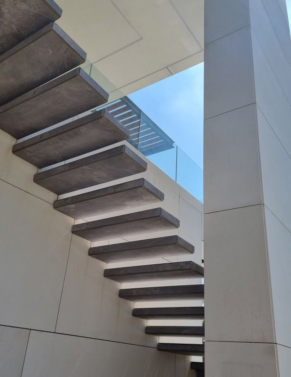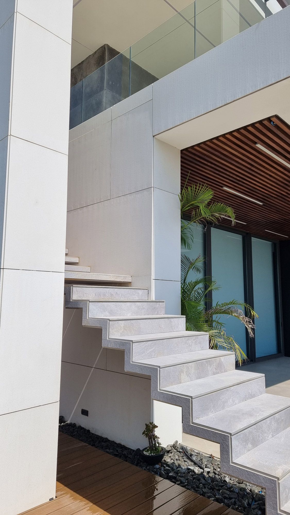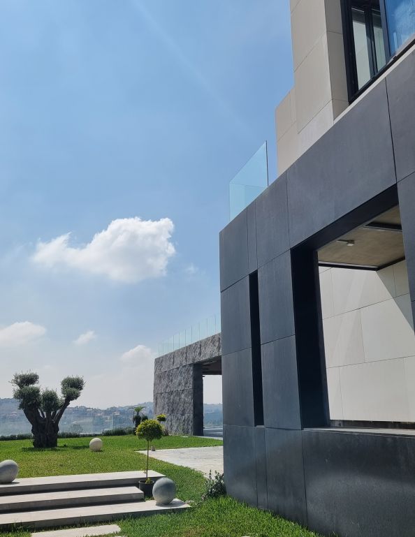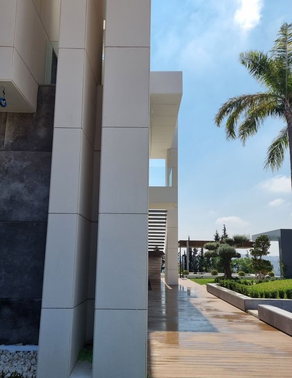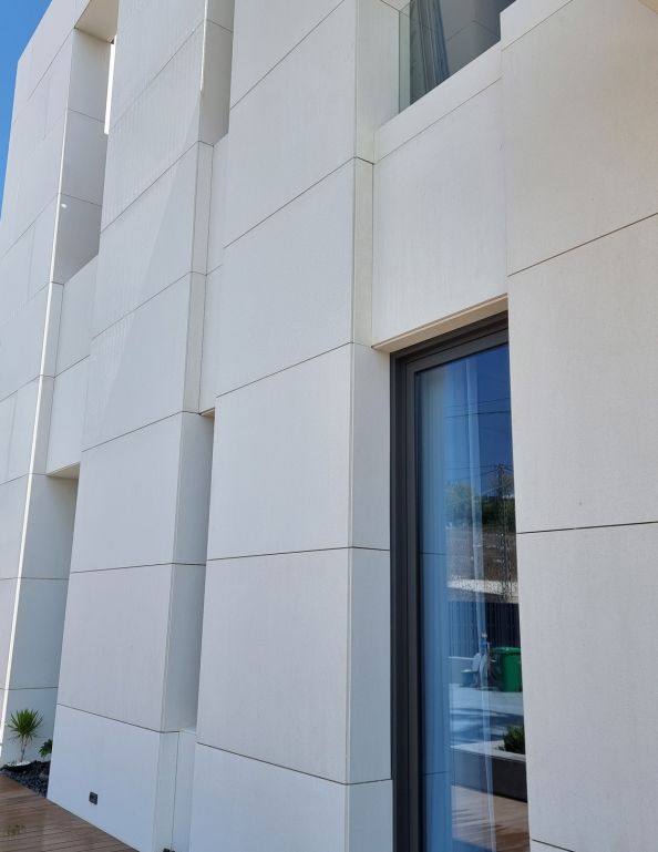 The Kfor Project embraces minimalism through clean geometry, neutral tones, and carefully selected materials that highlight the purity of form. The facade is composed of large-format panels in a soft white-beige tone, arranged in a staggered grid that gives subtle depth and texture without ornamentation.